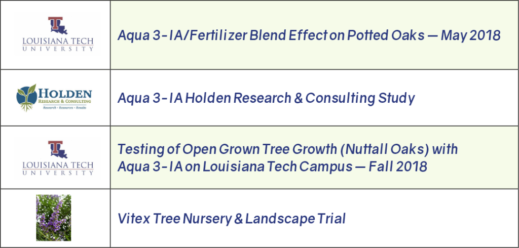 Studies have shown the effectiveness of Aqua 3-IA on plants and trees used in professional landscaping.